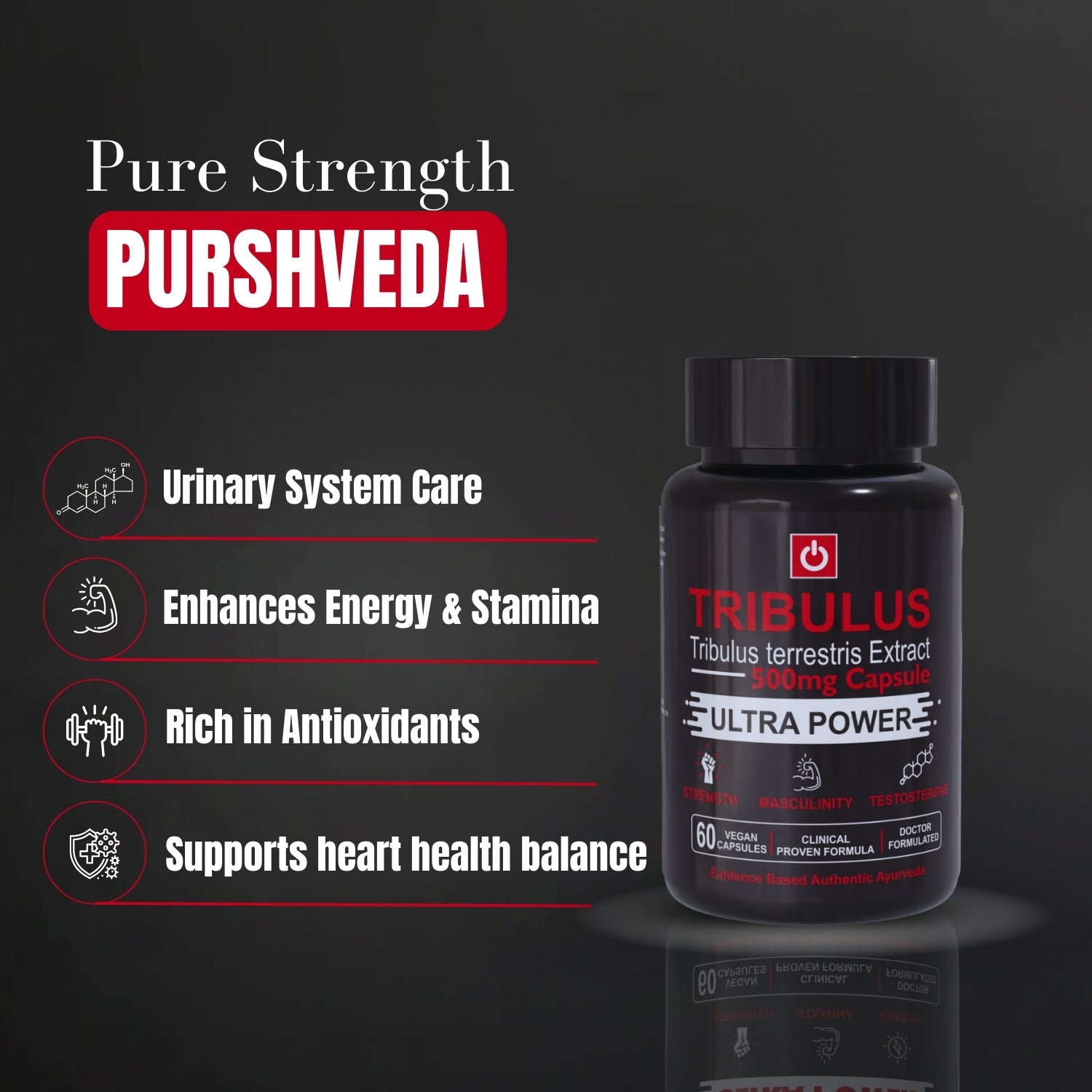 PurshVeda Tribulus Vegan Capsules are formulated with high-quality Tribulus extract to support natural energy, strength, and endurance. These vegan capsules help improve testosterone, physical performance, stamina, and overall daily wellness.
